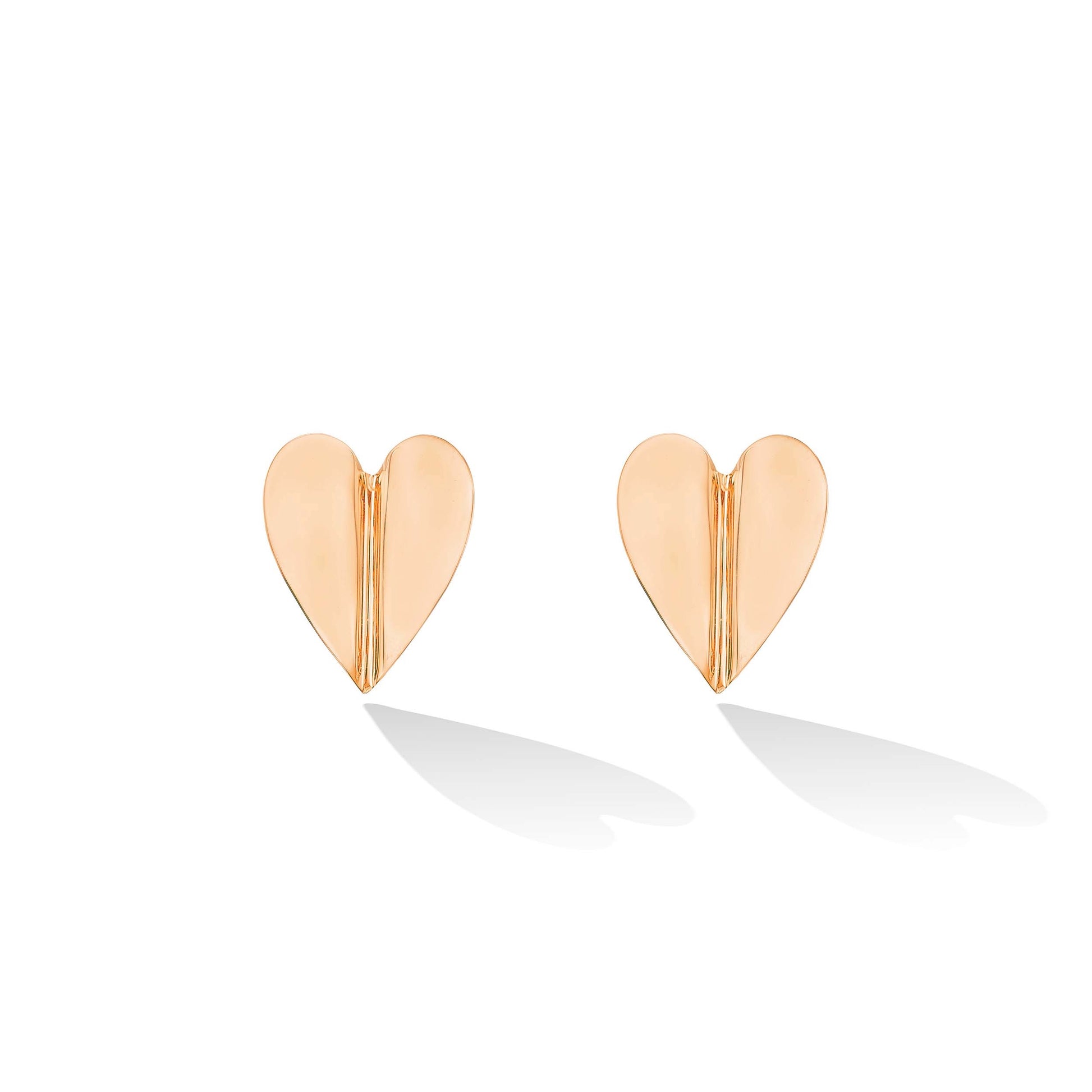 Our beautiful 0.7-inch folded rose gold heart studs rest on your ear like a butterfly and are designed to cover your lobes in a rosy reflection. The alluring folded heart design is inspired by the feeling of butterflies. Polished to perfection in 18K rose gold, these handcrafted studs never fail to dazzle.