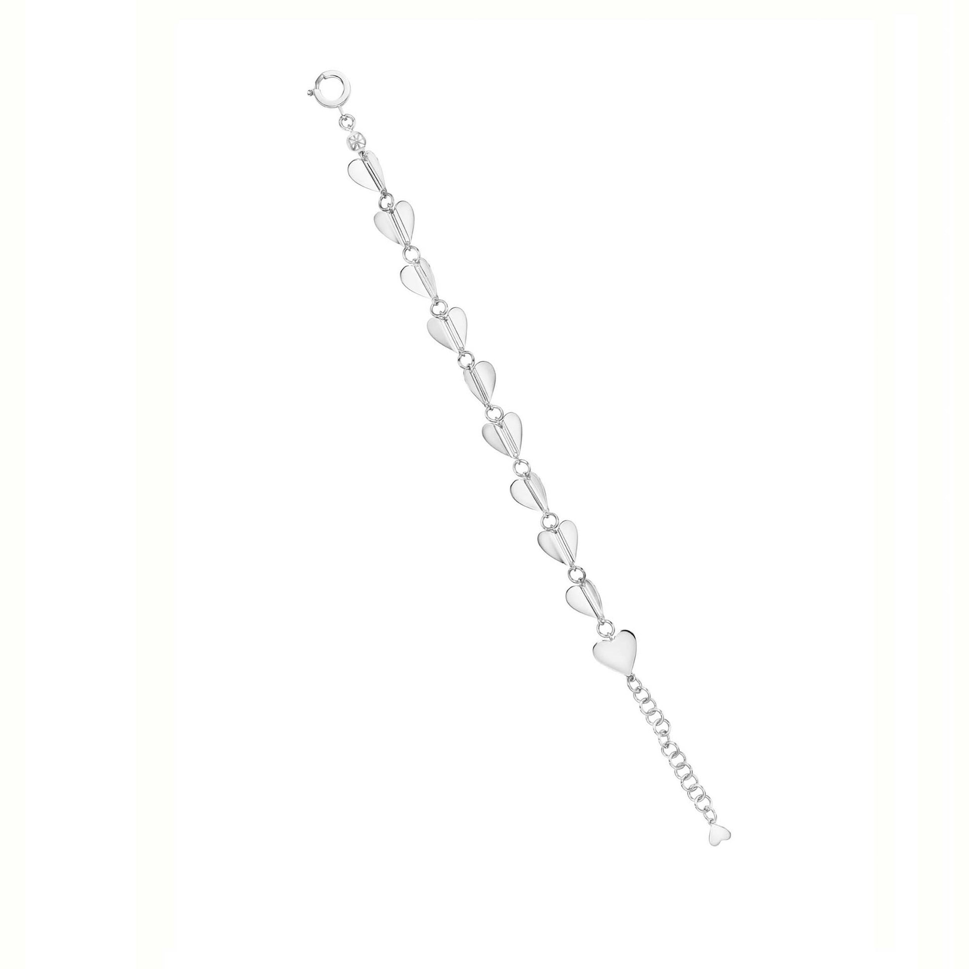 Adorn your wrist with this romantic 18K white gold chain bracelet with 12mm folded hearts. Each polished heart is folded to symbolize the movement of a beating heart and the feeling of being in love. Designed to seamlessly and comfortably meld to the curves of your wrist, this heart bracelet will reflect white light with each graceful gesture of your hand.