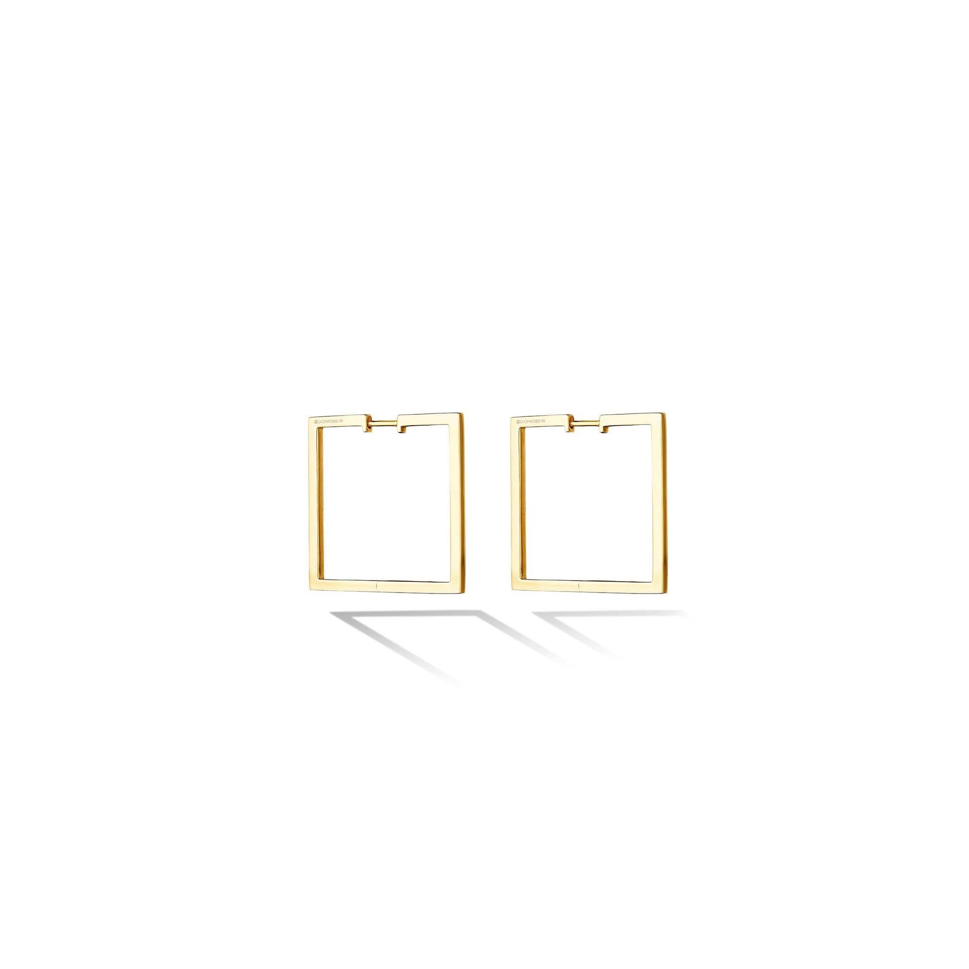 Simple and strong, the clean lines on these stunning medium 30mm square hoop earrings in 18K yellow gold cut a dashing silhouette to complement the curves of your jawline. The 2mm thickness of these timeless hoops gives them a delicate quality while the ninety-degree corners are visually strong, symbolic of the elegance of feminine strength.