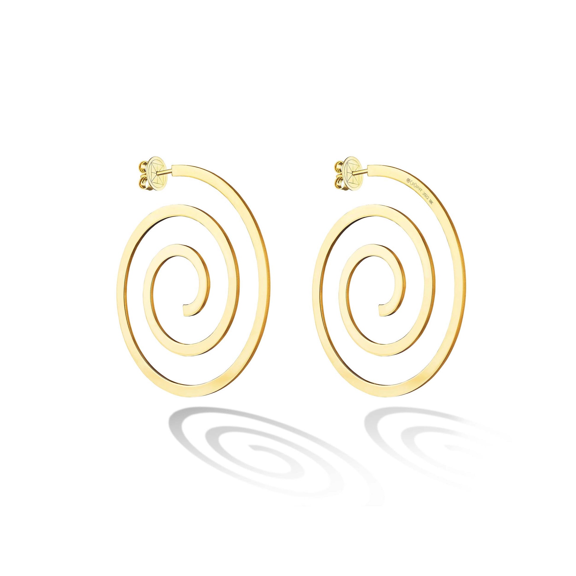 Spiral into wonderland with these daring gold spiral hoop earrings. The extensive hand polishing that each piece undergoes before it reaches your ear gives these beauties the utmost shine. Designed to hypnotize using the nature-inspired fractal spirals produced by the earth's creations, these are an essential part of any gold-lover's diverse jewelry wardrobe.